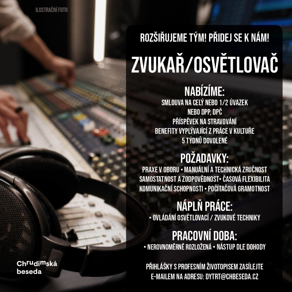 Přidej se k nám! Rozšiřujeme tým! ZVUKAŘ / OSVĚTLOVAČ