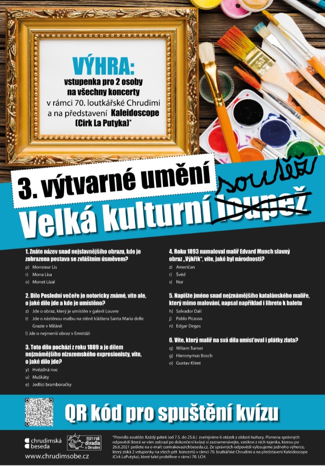 Každý pátek (od 7.5. do 25.6.) zveřejníme 6 otázek z oblasti kultury.